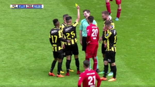 Most egy nem mindennapi eset történt a Vitesse – Twente mérkőzés 60. percében, hogy a szerelni akaró Navarone Foor véletlenül felrúgta a játékvezetőt, Jochem Kampuist.