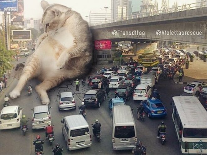 Az indonéz művész, a Fransdita Muafidin egy sor fotózott macskát hozott létre a városi tájak köréből a világ minden tájáról. Ha inkább cicás gazdi vagy biztos tetszeni fognak a képei.
